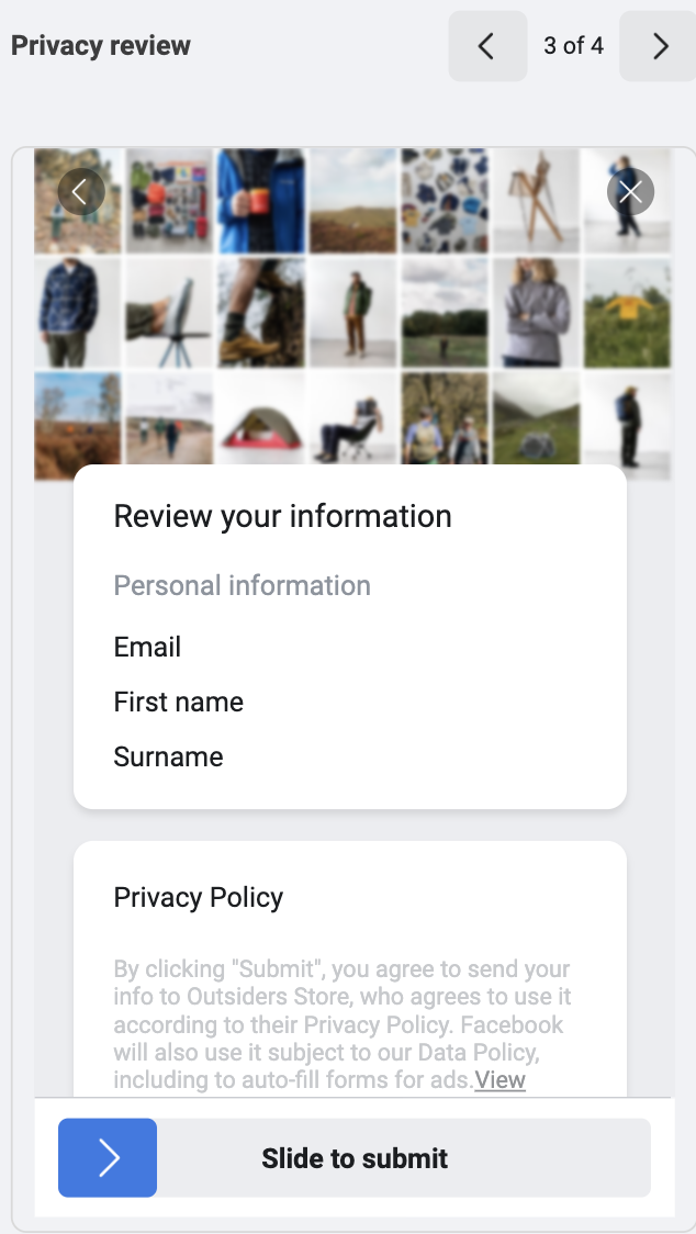 We kept the ads simple and slick. We utilised the platforms’ clever instant experiences, which means it only takes three clicks to be subscribed to the mailing list. Once you’ve pressed “next” the form is pre-filled with your information. It’s seamless, with very little room for drop-off.